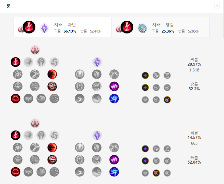 롤 시즌 10 미드 에코 룬은 이런 식으로 가면 될거 같습니다. 마법 저항이랑 방어만 나뉘네요. 상황에 맞게 가주면 될거같습니다.